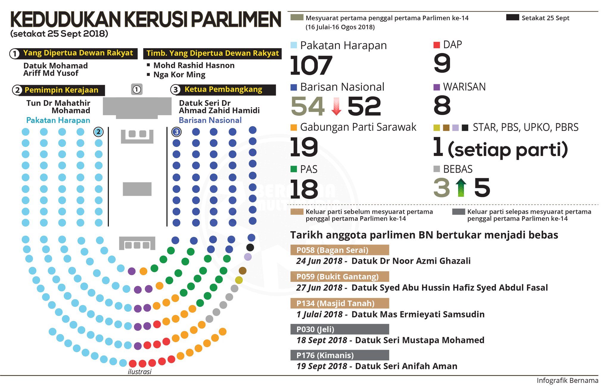The 2018 malaysian general election formally known as the 14th malaysian general election was held on wednesday 9 may 2018 for members of the 14th parliament of malaysia. Selama lebih tiga dekad berkecimpung dalam arena politik, datuk seri mustapa mohamed dianggap antara nama besar dalam kancah politik tanah air. Jumlah kerusi parlimen di seluruh malaysia adalah 222. Kekuatan sebenar parti politik di malaysia pada dasarnya dinilai mengikut jumlah kerusi parlimen dan dewan undangan negeri (dun) yang dimenangi. 3 blok kerajaan memiliki 114 kerusi parlimen.