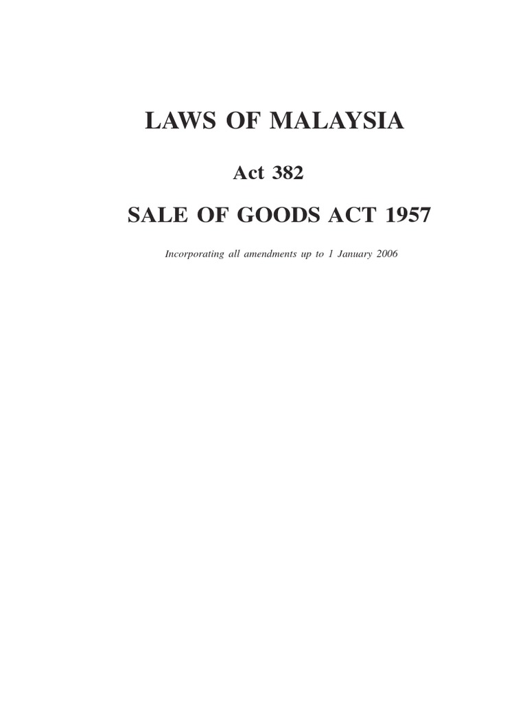 Act 382 sale of goods act 1957. Therefore, sale of goods act, 1957 cannot ca nnot apply. Sale of goods act 1957 generally the law pertaining to the contract of sale of goods is regulated by the sale of goods act 1957. (1) this act may be cited as the sale of goods act 1957. Pursuant to the same, discuss the following with reference to the relevant provisions and case.
